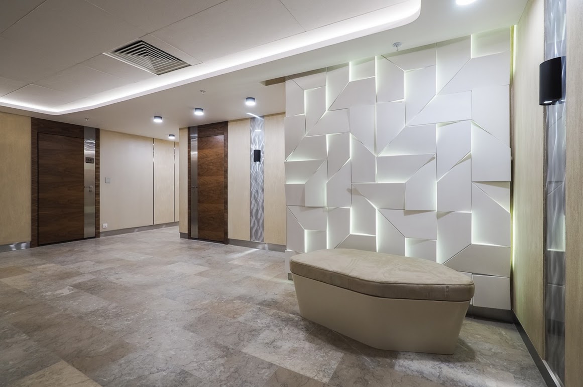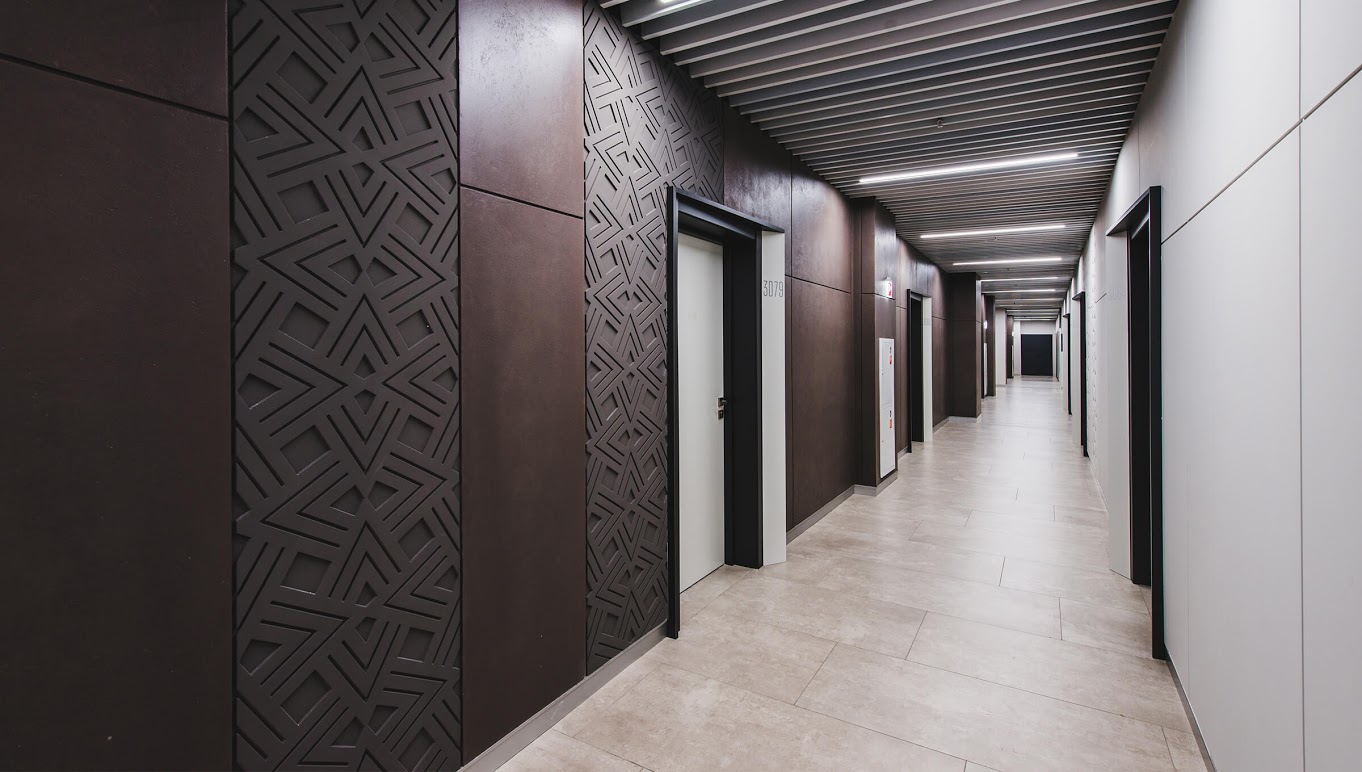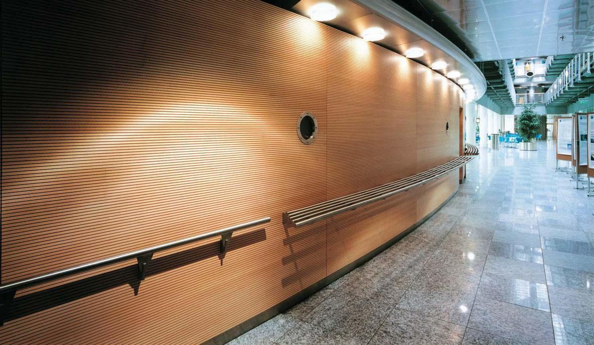 Панели широко применяются в отделке офисных помещений, торговых центров, спортивных сооружений больниц и гос. учреждениях.