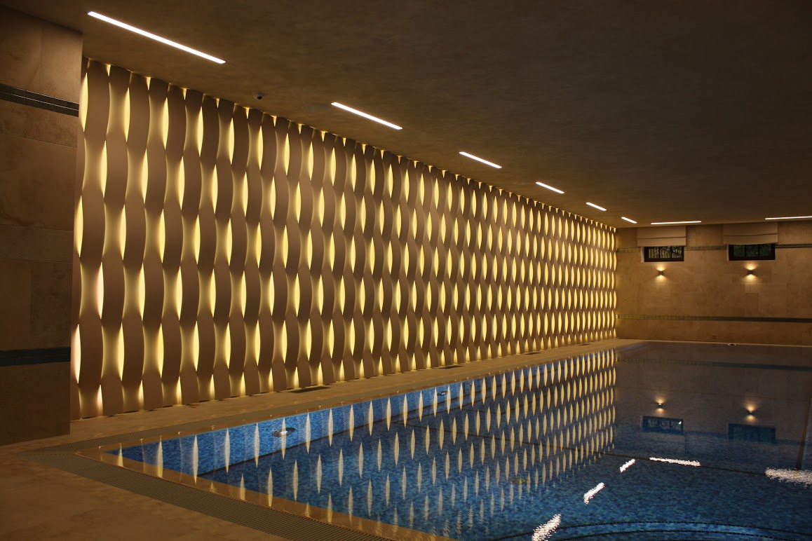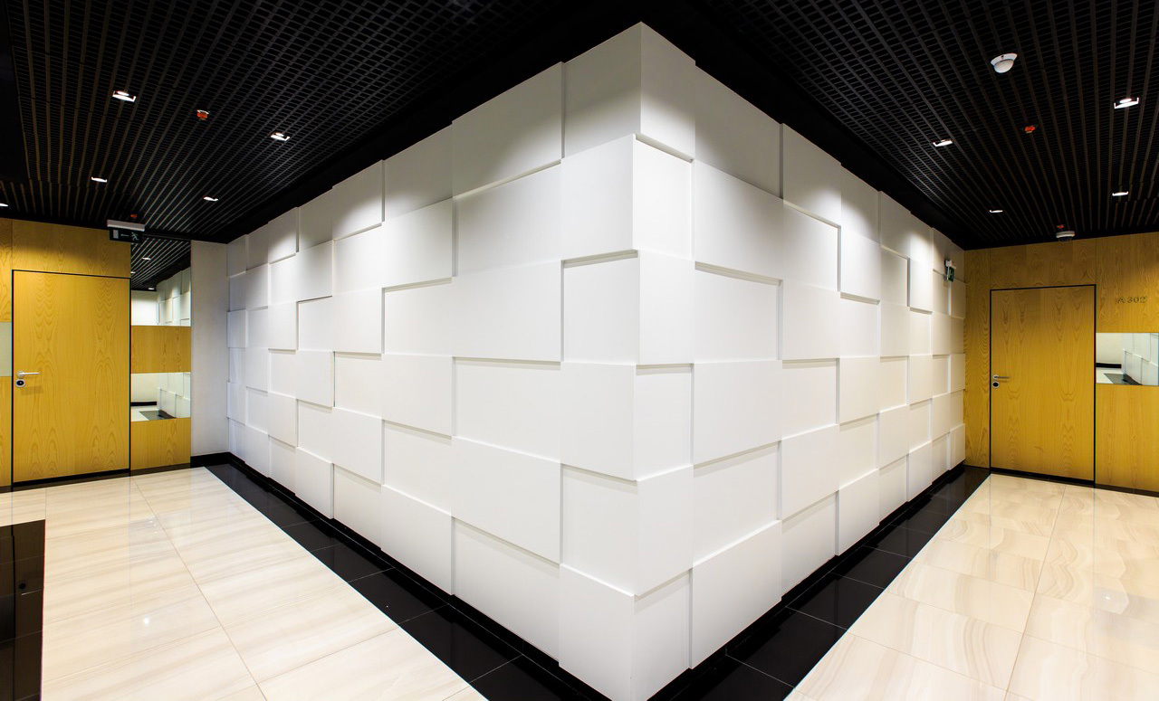 Стеновые панели стыкуются бесшовно и выглядят как непрерывное объёмное панно. Они хорошо смотрятся в минималистичных интерьерах на контрасте с ровными поверхностями. В больших пространствах помогают выделять функциональные зоны, задавать ритм и акценты. Некоторые модели имеют встроенную светодиодную подсветку.